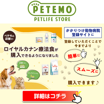 <ペテモの店舗で!>ロイヤルカナン食事療法食が購入できるようになりました!!かかりつけ動物病院登録サイトに登録していただくことで今までより簡単に、スムーズにペテモの店舗でロイヤルカナン療法食が購入できます!※詳しくは下記のリンクをご確認下さい。https://www.aeonpet.com/lp/v-royalcanin-guide.html